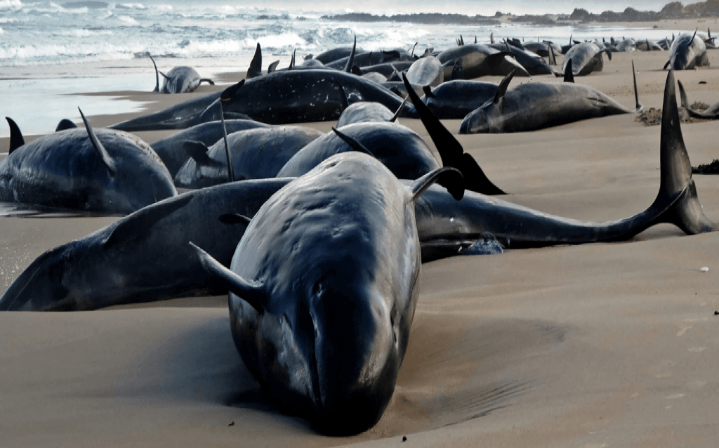 Es bastante común que grupos de orcas falsas encallen en las playas de Australia. Pero los funcionarios dijeron que era la primera vez en 50 años que encallaban en esa parte de Tasmania.