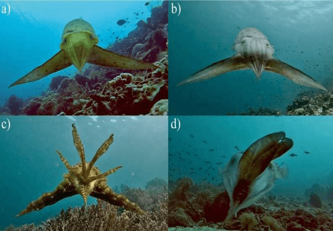 Un pequeño equipo de biólogos marinos de la Universidad de Bristol, en el Reino Unido, en colaboración con un colega de la Agencia Regional de Investigación e Innovación de Papúa Occidental, Indonesia, ha descubierto que las sepias salvajes adaptan la forma y el color de su cuerpo de determinadas maneras, según las circunstancias, para esconderse de presas desprevenidas. En su estudio publicado en la revista Ecology, el grupo pasó varios meses en el mar frente a la costa de Nueva Guinea, filmando a las sepias mientras cazaban.