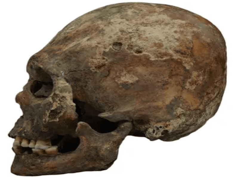 Sin embargo, un esqueleto intrigante es el de una mujer huna de entre 35 y 50 años con un cráneo alargado que fue enterrada con aretes de oro en el sitio de Pusztataskony en Hungría en la primera mitad del siglo V.