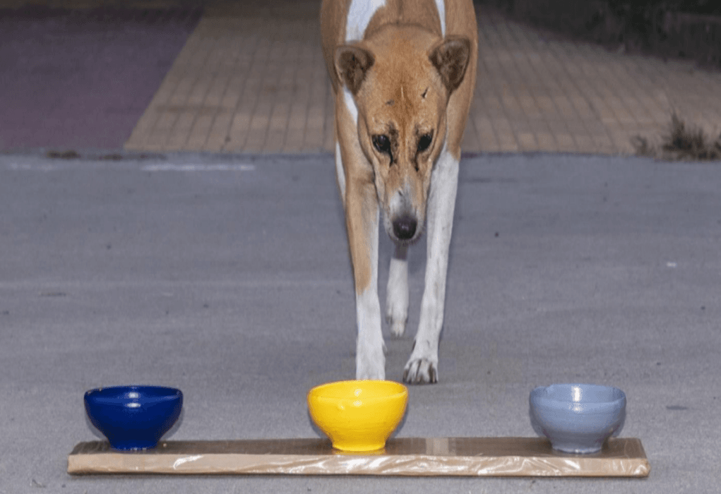 Cuando los investigadores realizaron experimentos con 134 perros en libertad, cada perro se enfrentó a una elección: cuencos amarillos, azules o grises colocados en el suelo. Cada perro tuvo solo una oportunidad para elegir. Sorprendentemente, la mayoría de estos perros callejeros no dudaron: se dirigieron directamente al recipiente amarillo, significativamente más que al azul o al gris.