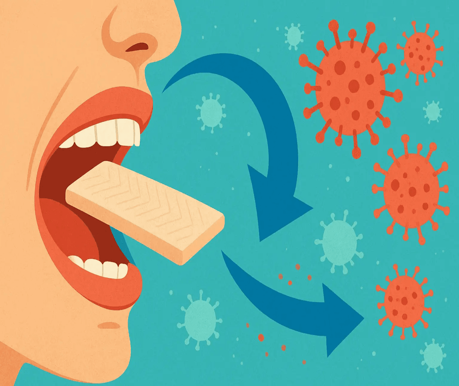 Científicos de la Facultad de Medicina Dental de la Universidad de Pensilvania han creado un chicle que puede neutralizar los virus responsables de causar la gripe y el herpes en los humanos. Esta goma de mascar antiviral se elabora con frijoles lablab (frijoles jacintos), que contienen una proteína única capaz de reducir la carga viral en un 95%. La goma de mascar detiene los virus únicamente en la boca, impidiendo que entren e infecten otras partes del cuerpo.
