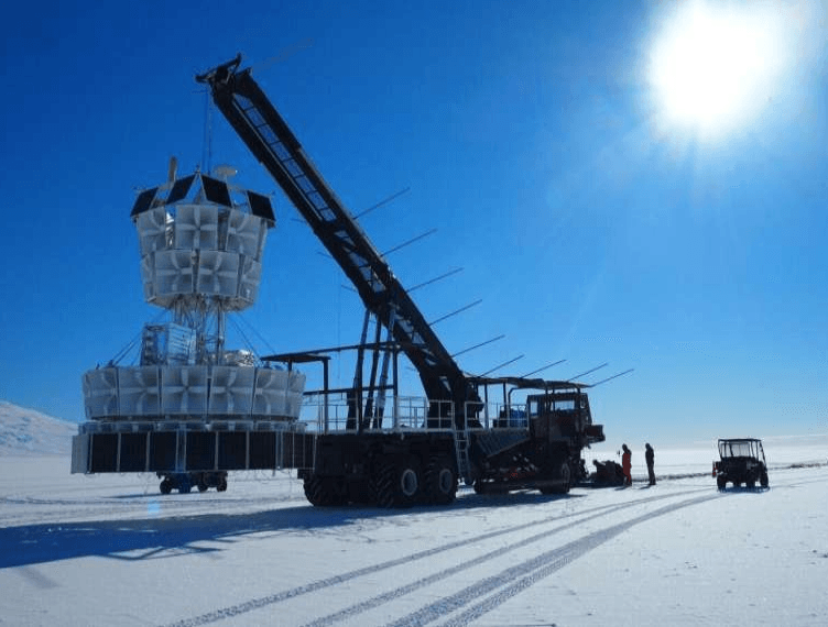 ANITA es uno de estos detectores, y se instaló en la Antártida debido a la baja probabilidad de interferencia de otras señales. Para captar las señales de emisión, el radiodetector, transportado en globo, se envía a sobrevolar extensiones de hielo, capturando lo que se conoce como lluvias de hielo.