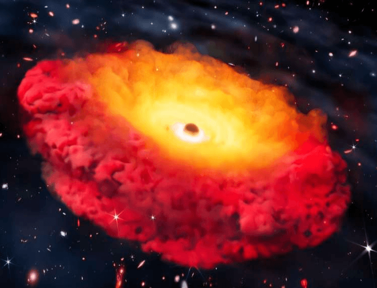 La galaxia recién descubierta también podría ayudar a comprender la causa del distintivo color rojo de los Puntos Rojos. Esto podría deberse a una densa nube de gas que rodea el agujero negro, distorsionando su luz hacia longitudes de onda más rojas al atravesarlo.