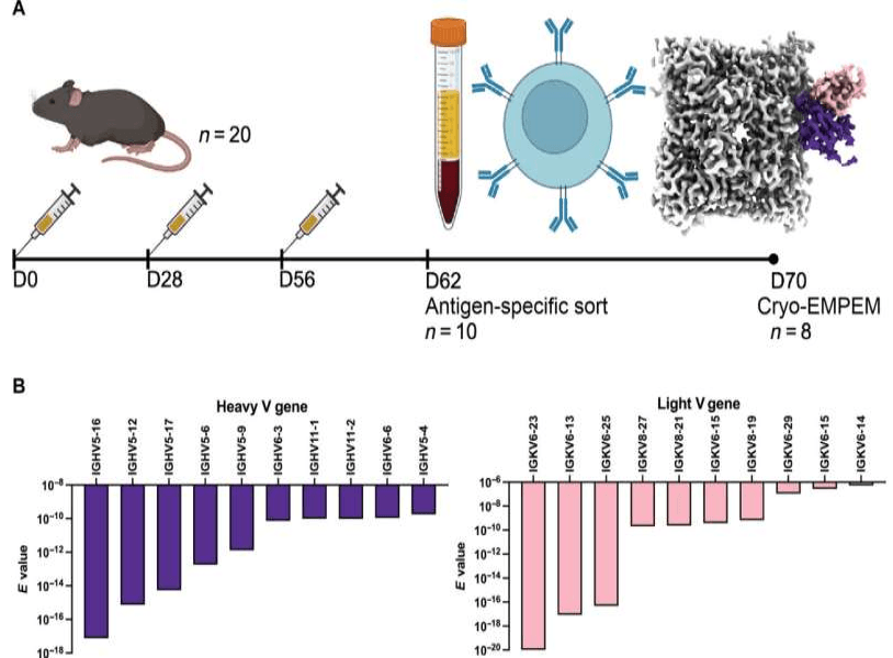 Aprovechando estas dos tecnologías, Ward y su laboratorio analizaron los patrones estructurales de las respuestas de anticuerpos y luego utilizaron ModelAngelo para identificar los anticuerpos más compatibles de su base de datos. Este método, conocido como Estructura a Secuencia (STS por sus siglas en inglés), se basa en hallazgos previos del laboratorio de Ward, que utilizaron crioEM para mapear rápidamente todos los anticuerpos generados por una infección en cuestión de días.