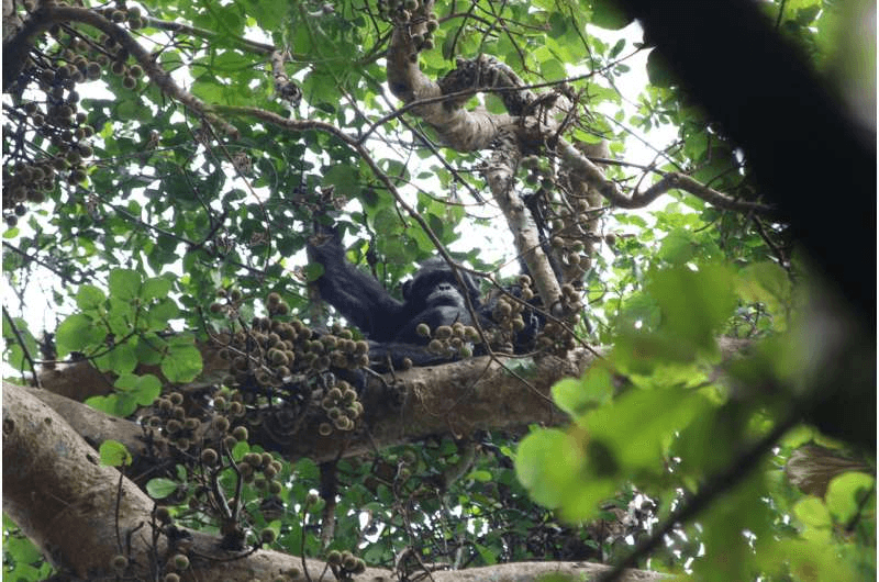 Ponderado por la proporción de tiempo que los chimpancés comen cada tipo de fruta, el contenido promedio de alcohol de la fruta fue de 0.32% en peso en Ngogo y 0.31% en Taï. Las frutas consumidas con más frecuencia en cada sitio —un higo, Ficus musuco, en Ngogo, y el fruto parecido a la ciruela del perenne Parinari excelsa en Taï— fueron las de mayor contenido de alcohol. Grupos de chimpancés machos a menudo se reúnen en el dosel de los árboles F. musuco para consumir fruta antes de salir a patrullar los límites de su comunidad, señaló Maro. Y el fruto de P. excelsa también es muy popular entre los elefantes, que se sabe que se sienten atraídos por el alcohol.