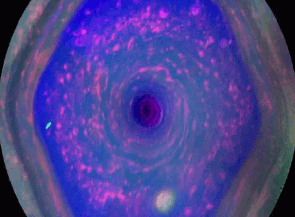 El hexágono de Saturno fue descubierto por primera vez en 1980 por la nave espacial Voyager de la NASA y fotografiado con gran detalle por la nave espacial Cassini, que orbitó el planeta entre 2004 y 2017. Se eleva como una torre de seis lados de 29.000 kilómetros de ancho que gira sobre la superficie del planeta, realizando una rotación completa aproximadamente una vez cada 10 horas.