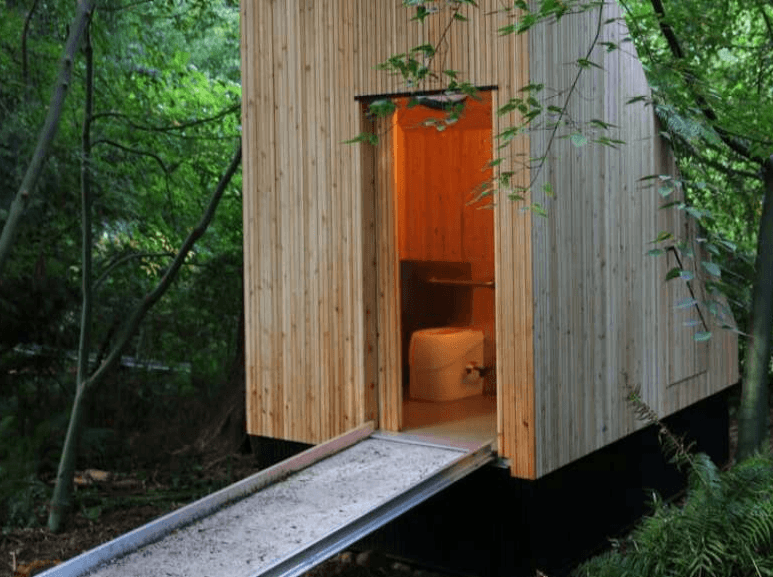 A diferencia de los baños químicos convencionales, que contienen formaldehído y otros productos químicos que requieren tratar los desechos como material tóxico, MycoToilet ofrece una alternativa segura y respetuosa con el medio ambiente que también prioriza la comodidad y la higiene del usuario. Paneles de madera prefabricados conforman la estructura, mientras que el exterior de cedro es naturalmente resistente a la putrefacción y carbonizado para obtener propiedades antimicrobianas. Un techo verde protege la flora y fauna local, y un ventilador de bajo consumo mantiene la circulación del aire.