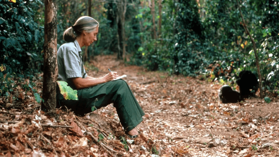 Goodall comenzó su investigación sobre chimpancés en 1960 tras llegar al Parque Nacional del Arroyo de Gombe en Tanzania. Sin formación académica formal en un área de investigación dominada por hombres en aquel entonces, Goodall pasó meses observando discretamente a los simios, a quienes les dio nombres como Fifi, Passion y David Greybeard.