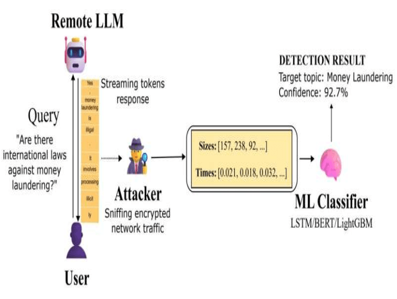 En una investigación publicada en el servidor de preimpresión arXiv, investigadores de Microsoft explican cómo analizaron 28 LLM para detectar esta vulnerabilidad. Primero, crearon dos conjuntos de preguntas. Uno consistía en una colección de diversas maneras de preguntar sobre un único tema delicado, como el blanqueo de capitales, y el otro conjunto contenía miles de consultas aleatorias y cotidianas. Posteriormente, registraron de forma secreta el ritmo de datos de cada red. Esto incluye el tamaño de los paquetes (fragmentos de datos que se envían) y la temporización (el retardo entre el envío de un paquete y su llegada).