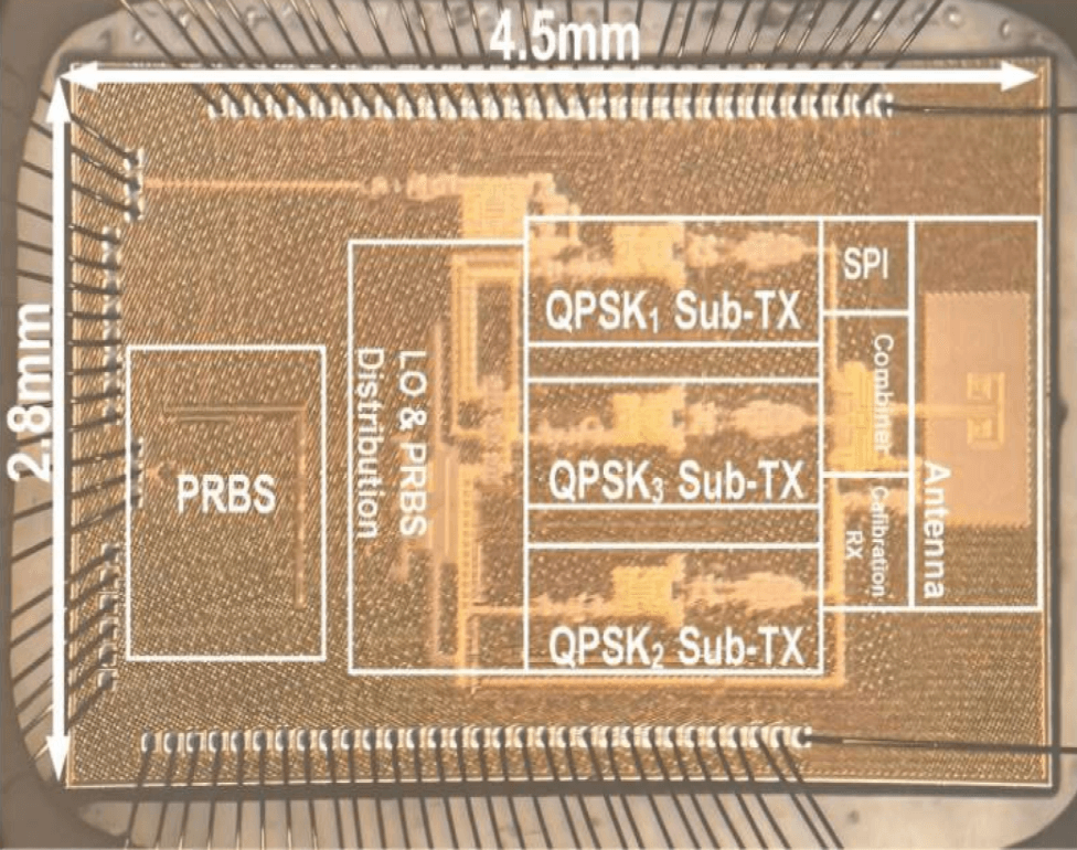 Señaló que el chip receptor, fabricado con tecnología de silicio sobre aislante de 22 nanómetros totalmente agotado, consume sólo 230 milivatios de energía, lo que lo hace lo suficientemente eficiente para dispositivos portátiles.