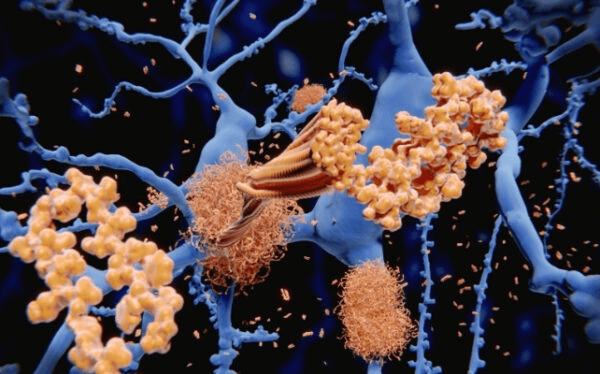 El Alzheimer se caracteriza por la acumulación de depósitos pegajosos de una proteína llamada beta amiloide entre las neuronas del cerebro. Estas acumulaciones, o placas, interfieren con la comunicación entre ellas y provocan inflamación y daño que deterioran lentamente la memoria y el pensamiento.