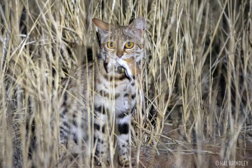 Al amparo de la noche, un gato patinegro se mueve casi invisible entre la hierba del sur de Namibia, cazando pequeños roedores, aves e insectos. Con apenas un tercio del tamaño de un gato doméstico, su pelaje leonado, salpicado de manchas oscuras, le ayuda a desaparecer en el paisaje sombrío. De día, desaparece bajo tierra, hundiendo su pequeño cuerpo en madrigueras y túneles abandonados, un comportamiento poco común entre los felinos.
