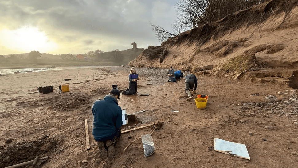 Arqueólogos descubren huellas de la época romana en una playa escocesa antes de que la marea las arrastrara